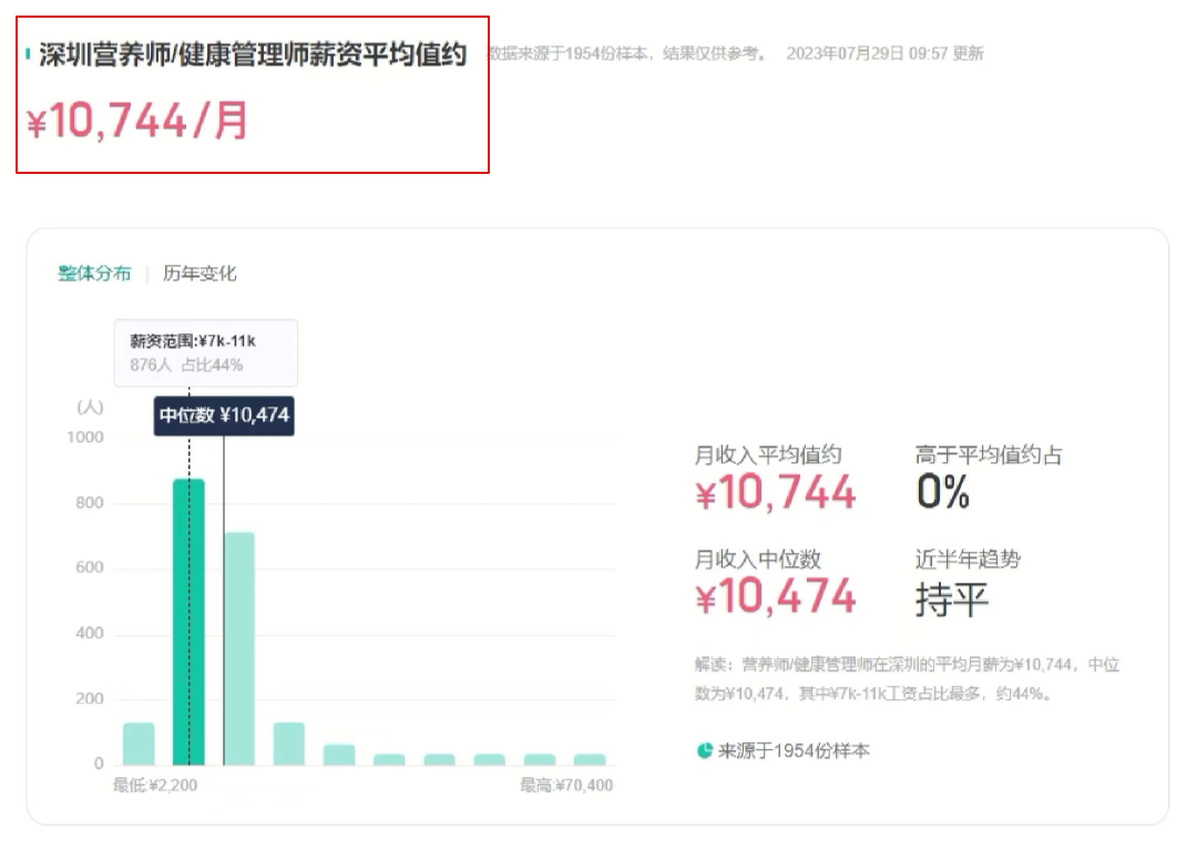 就业范围广,有“钱”景 营养师的需求领域相当广泛 。例如:医院、健身中心、保健机构、餐饮服务管理、食品和制药公司、市场协会、餐饮服务供应商、大学等等。 数据显示, 深圳公共营养师人才的 就业趋势在稳步上升 ,每月的平均薪资已超过 1万元 该职业前景乐观,薪资待遇理想!