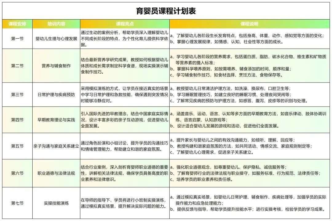 拒绝纸上谈兵,我们注重实操,从宝宝日常护理到紧急情况处理,让您成为真正的育婴高手!