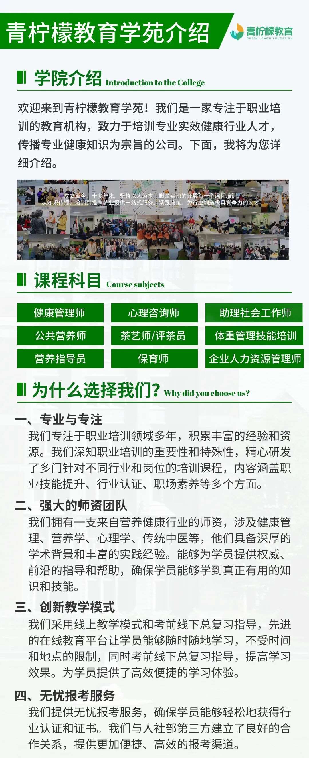 参与人群:对健康管理、营养膳食感兴趣的爱好者,有志于进入健康营养行业的各界人士