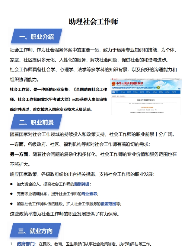 1.对社会问题有浓厚兴趣,愿意为改善社会福祉贡献自己的力量。 2.具备较好的沟通能力和组织协调能力,能够与不同群体进行有效沟通。 3.具备较强的学习能力和适应能力,能够不断学习和适应新的工作环境和任务要求。 4.具备较强的责任感和使命感,能够承担起社会责任和使命担当。
